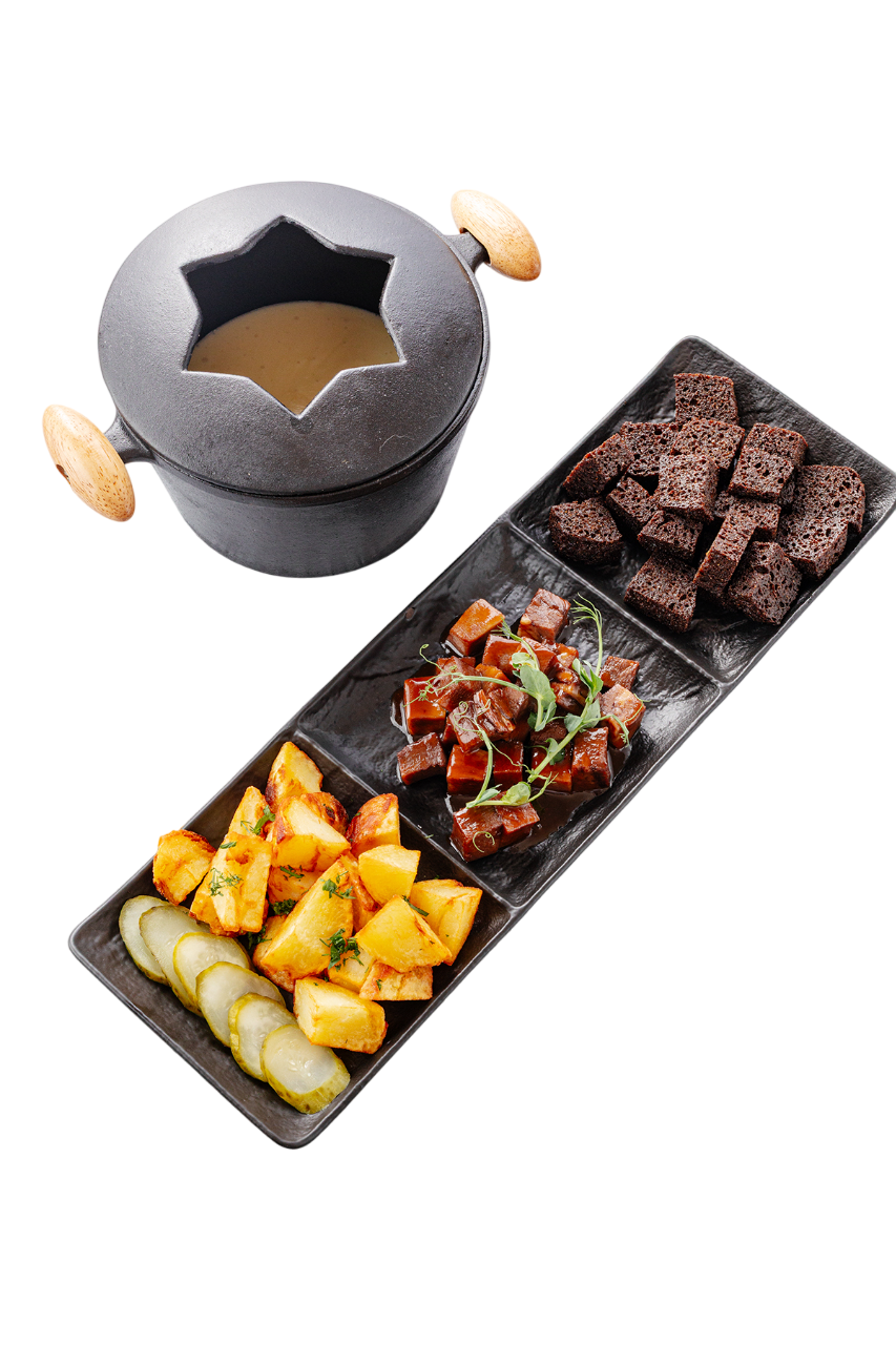 Хлеб, выпеченный в дровяной печи. Подаем со взбитым сливочным маслом и черной солью.